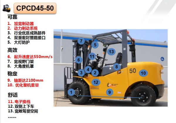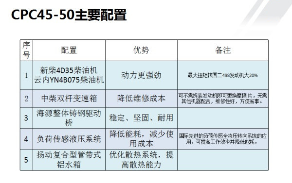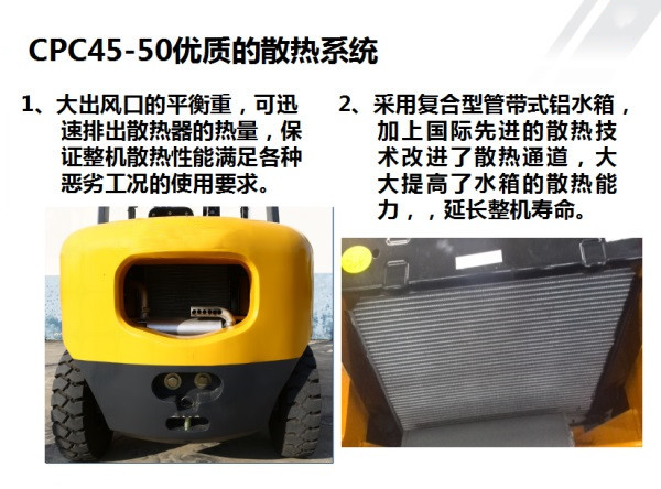 CPC45-50內(nèi)燃叉車,是充分調(diào)研客戶需求,結(jié)合國內(nèi)外叉車優(yōu)點(diǎn),開發(fā)的一款高性價比A系列整機(jī)。